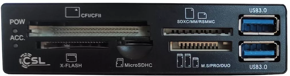 Kompatibilis kártyák:- CF1/CFII- X-FLASH- MicroSDHC- SDXC/MM/RSMMC- M.S/PRO/DUOTovábbi csatlakozók:- USB-A 3.0 2xAlaplapi kábelcsatlakozók:- USB 3.0 19 PIN anya (60 cm)- USB 2.0 9 PIN anay (55 cm)