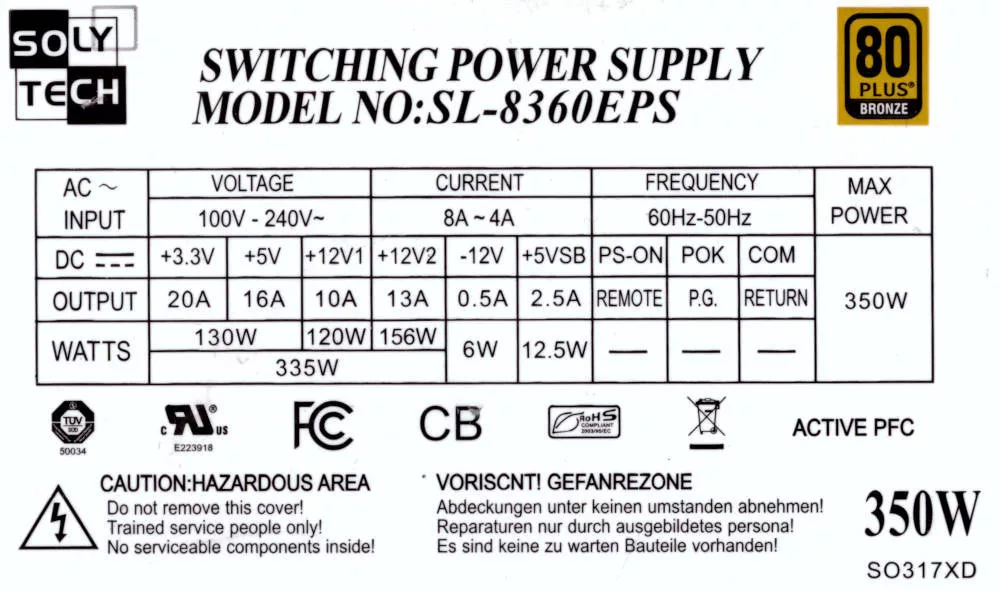 350W tápegység Soly Tech SL-8360EPS 80+ Bronze