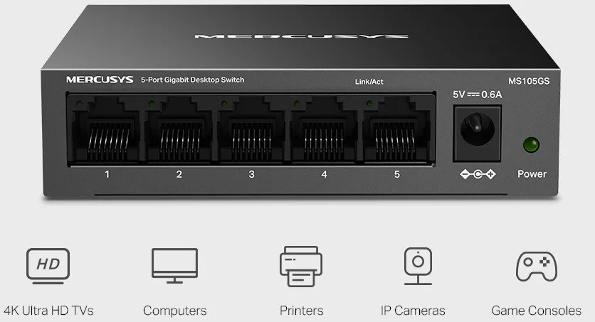 Gigabites Portok:5× 10/100/1000 Mbps sebességű, automatikus egyeztetésű RJ45 port, mely támogatja az Auto-MDI/MDIX funkciót.