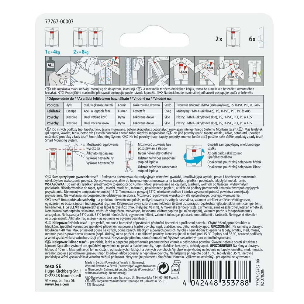 Akasztószög öntapadós, állítható sima felületekhez 4 kg teherbírás 2 darab/bliszter Tesa Powerstrips
