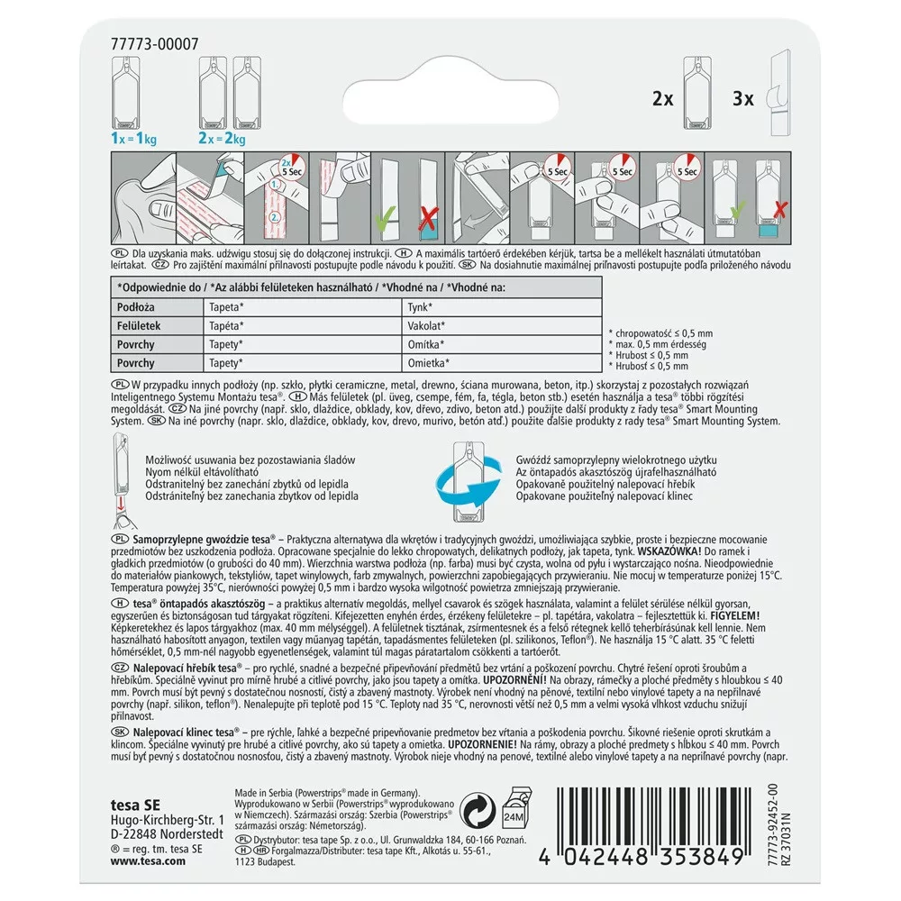 Akasztószög öntapadós, érzékeny felületekhez 1 kg teherbírású 2 darab/bliszter Tesa Powerstrips