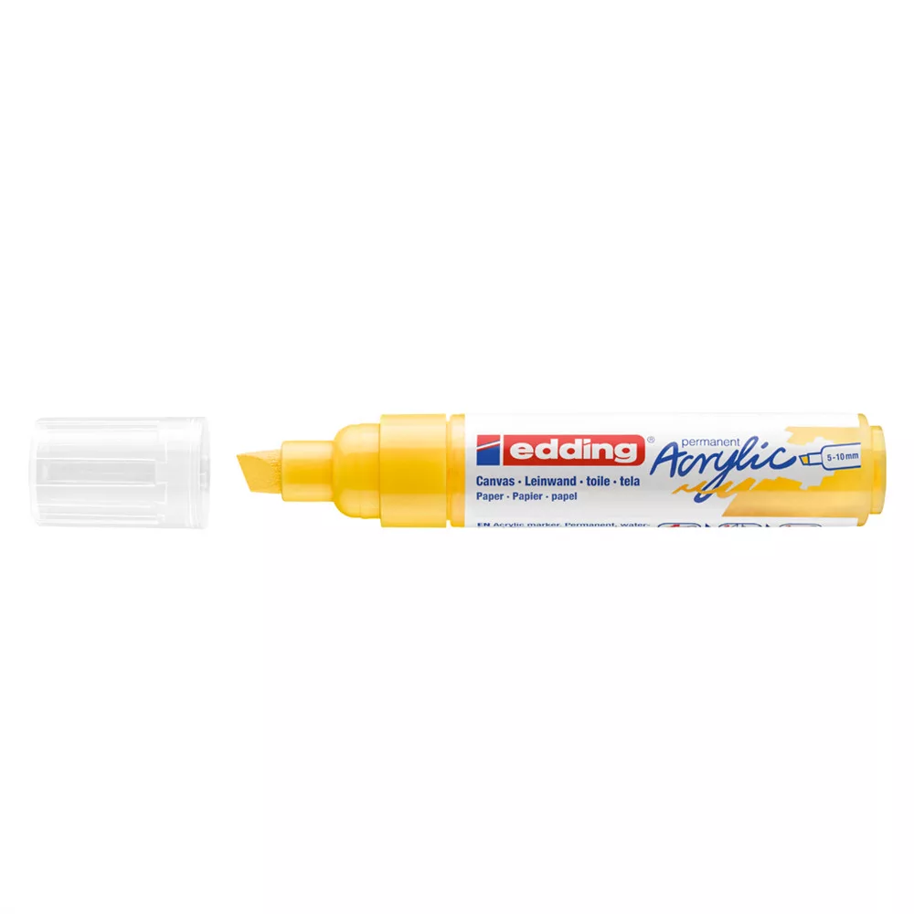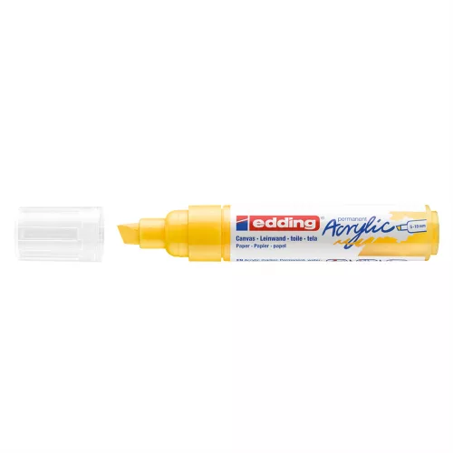 Akril marker világos vagy sötét felületekre történő festéshez, ideális olyan anyagokhoz, mint a vászon vagy a festőpapír. - A vágott írócsúcs vonalvastagsága 5-10 mm. - A kiváló minőségű, pigmentált, vízbázisú akrilfesték száradás után rendkívül tartós, átlátszatlan, fényálló és szagtalan. - A neon sárga szín áttetsző. Megfelelő pótcsúcsok (edding 5000 pótcsúcsok) elérhetők.- 26 féle színválasztékban elérhetők.- Keresse a további változatokat - edding 5100 és az edding 5300-at, valamint az edding 5400 3D hatású 2 végű akril markereket. Katalóguskód: 36498