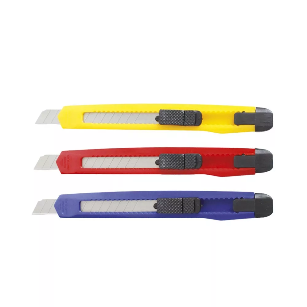 Univerzális kés,könnyű kezelhetőség - visszahúzható penge - műanyag tok. Penge szélesség: 9mm Katalóguskód: 23273