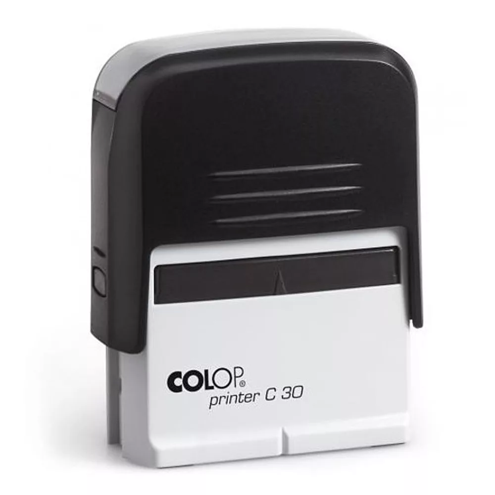 Printer C30 FEKETE ház FEKETE párnával Bélyegzőház szín: FEKETE Lenyomat szín: FEKETE Lenyomat méret: 18 × 47 mm Cserepárna: E/30 Katalóguskód: 3988