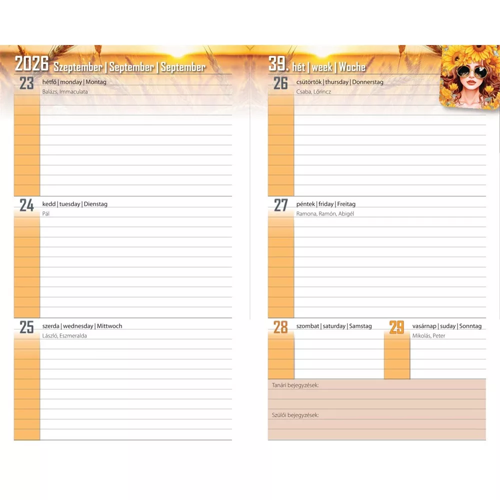 • 108 oldal heti beosztású naptár 2026. augusztus 17.- 2027. augusztus 22.-ig