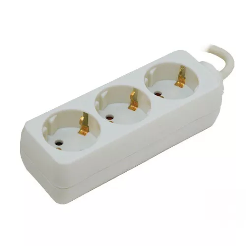 Beltéri hosszabbító, elosztó három csatlakozó aljzattal 5m hosszú kábellel. Kábel: H05VV-F 3G 1,0mm2 Fehér 3-as elosztó Katalóguskód: 9196