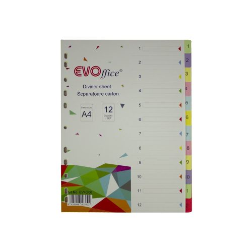 ELVÁLASZTÓLAP SZÍNES KARTON 12 RÉSZES EVOFFICE