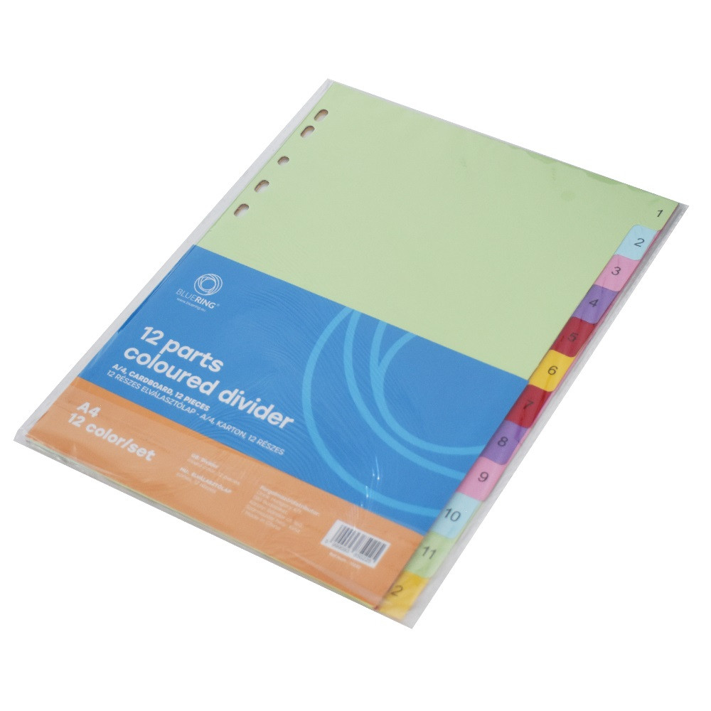 Elválasztólap, színes karton 12 részes Bluering®