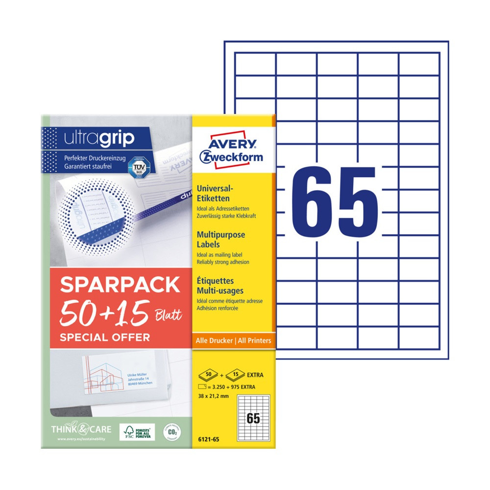 Címke mérete: 38 x 21,2 mm Doboz tartalma: 4225 címke - 65 lap/doboz (65 címke/ lap) Fehér papírcímkék 50+15 lapos takarékos csomagban. Pontos nyomtatásadagolás és garantált elakadásmentesség az innovatív ultragrip technológiának köszönhetően. FSC tanúsítvánnyal rendelkező, felelősségteljesen kezelt erdőkből származó papír, tartós ragasztóval. Ideális sokrétű felhasználásra, pl: mappák címkézésére, címzésre, rendszerezésre és jelölésre. Katalóguskód: 57301