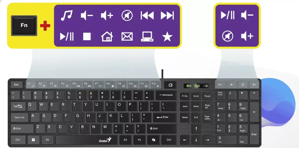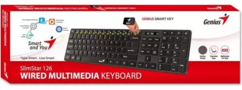 Genius SlimStar 126 a vékony multimédiás billentyűzet- Hairline design (Szálcsiszolt hatású felület)- Chocolate billentyűk (Lapos, szögletes billentyűk)- 12 multimédiás FN gomb- 4 gyorselérési gomb- Ergonomikus talp- USB Plug and Play (Azonnali használat)NÖVELJE A HATÉKONYSÁGOT AZ AI COPILOT GOMBBALAz elfoglalt szakemberek számára ideális AI Copilot gomb azonnal aktiválja a Copilot asszisztenst (Windows 11 rendszeren), így optimalizálva a munkafolyamatokat.ULTRAVÉKONY BILLENTYŰSAPKÁKA letisztult és elegáns megjelenés érdekében a SlimStar 126 ultravékony billentyűsapkákkal rendelkezik, amelyek csendes és stílusos gépelési élményt nyújtanak.12 MULTIMÉDIÁS FUNKCIÓGOMB ÉS 4 CÉLZOTT GYORSGOMB A GYORS PARANCSOKHOZA beépített multimédiás funkcióbillentyűk és a gyorselérési gyorsgombok rendkívül egyszerűvé teszik kedvenc zenéi elérését és az e-mailek közötti navigálást.STÍLUSOS TARTÓSSÁG ÉS SZÁLCSISZOLT FELÜLETPrémium minőség, stílusos szálcsiszolt fémhatású dizájnnal, amely megvédi a felületet a karcolásoktól.PLUG-AND-PLAY USB CSATLAKOZÁSAz USB-csatlakozás egyszerű, azonnali használatot tesz lehetővé (nincs szükség külön telepítésre).