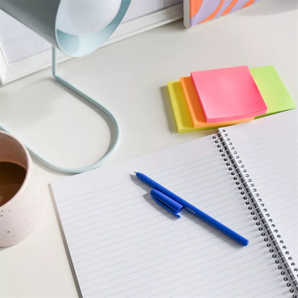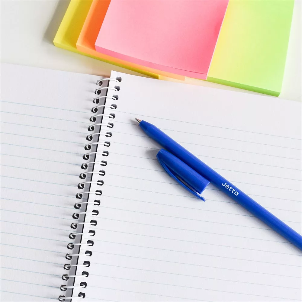 Nem cserélhető betétes, hatszögletű, légáteresztő biztonsági kupakos, színes testű golyóstoll 4 alapszínben. Az írás színe azonos a test színével.