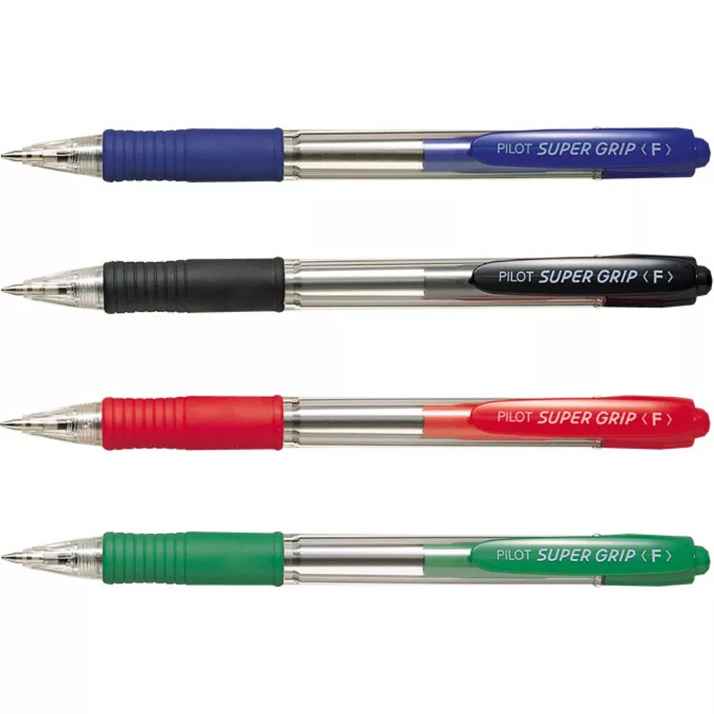 A Super Grip egy cserélhető betétes, nyomógombos golyóstoll, amely rendkívül kényelmes írást nyújt a fejlett olajbázisú tintának köszönhetően. Az erős és ellenálló (wolfram-karbid ötvözetű) golyó megtartja alakját, így nem fog pacát hagyni vagy karcolni a papíron. Az átlátszó tolltest lehetővé teszi, hogy a tinta szintjét folyamatosan ellenőrizhessük, míg a gumírozott markolat különösen kényelmessé teszi a toll használatát. A Super Grip különösen ajánlott a vékony íráskép szerelmeseinek. Írásvastagság: 0.22 mm Golyóátmérő: 0,7mm Katalóguskód: 2170