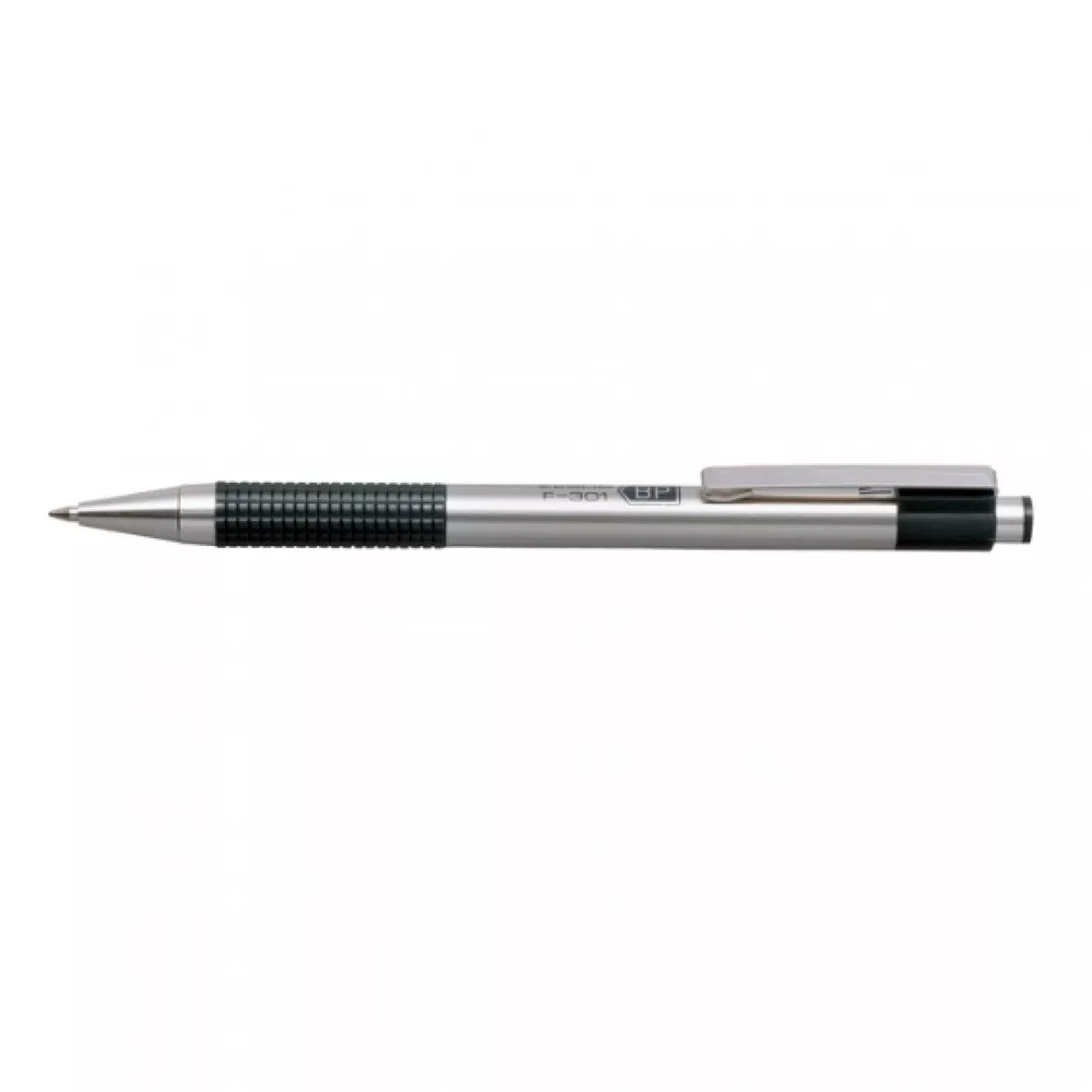 Az F-301 golyóstoll rozsdamentes acél tollteste a stílus és a tartósság záloga. Bordázott markolata garancia a kényelmes és stabil írásra. Markolat színek fekete. Tintaszín: kék. Golyóátmérő: 0,7 mm, írásvastagság 0,24 mm. Betét: F. 12db/gyűjtő, 1152db/karton. Katalóguskód: 764