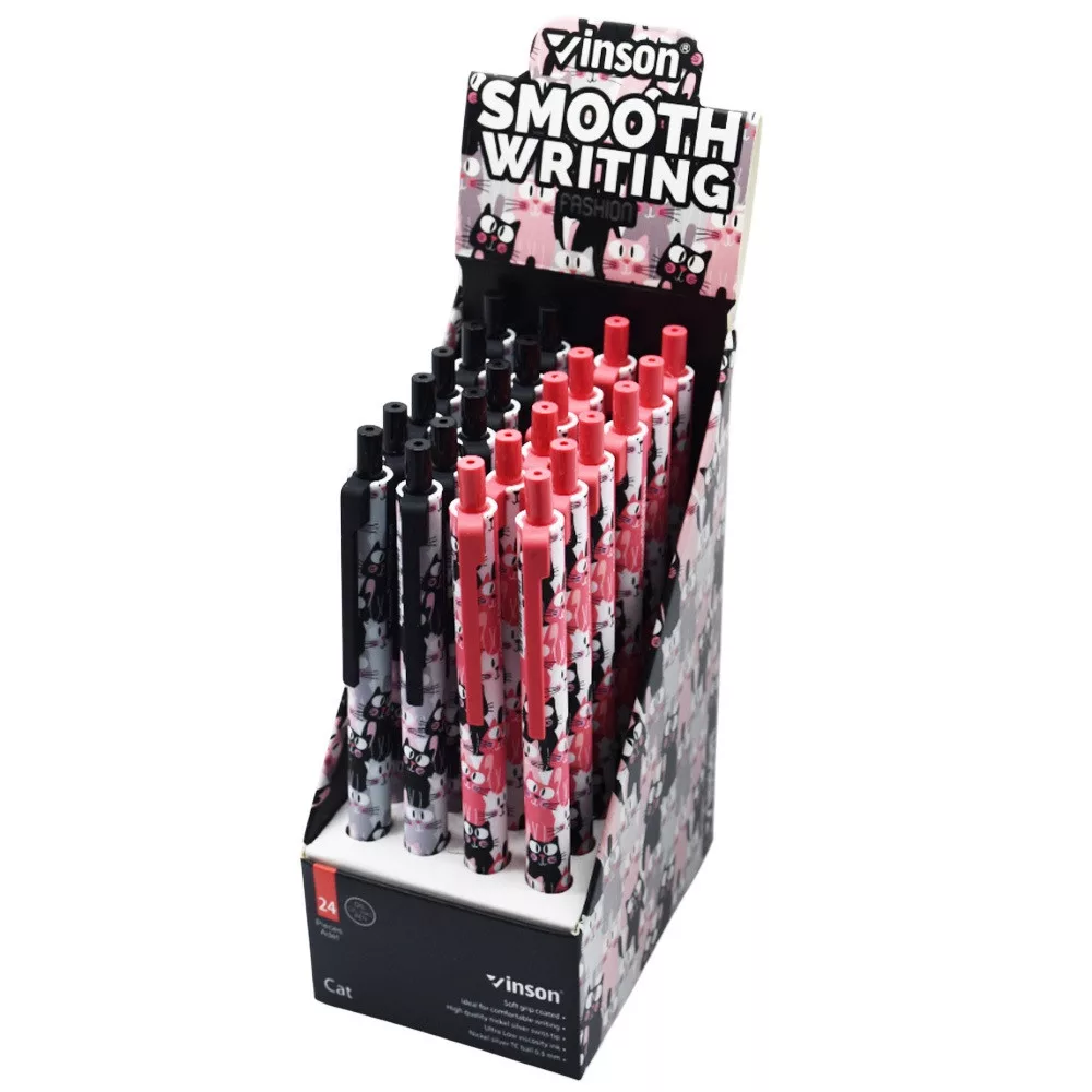 Golyóstoll nyomógombos 0,7mm Vinson Cat F2 vegyes test displ 24 db/display