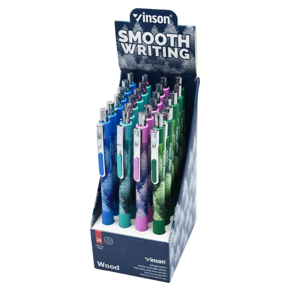 Golyóstoll nyomógombos 0,7mm Vinson Wood 108 vegyes test displ 24 db/display