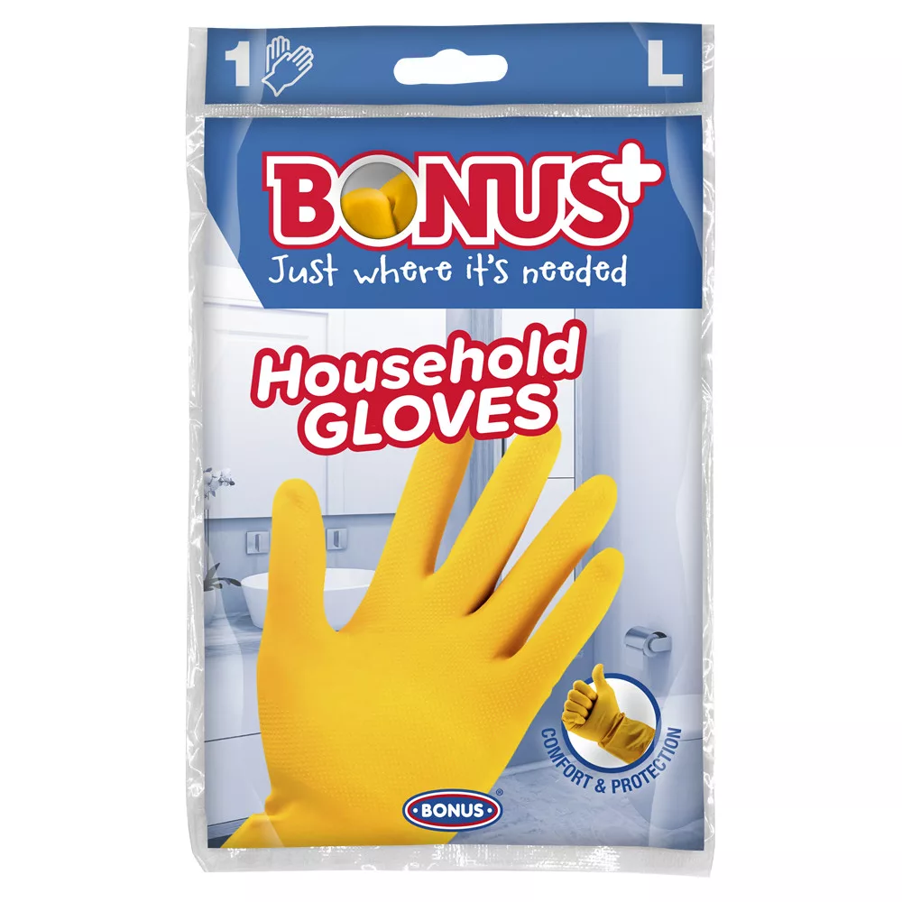A BONUS háztartási latex gumikesztyű védelmet, extra higiéniát és kényelmet nyújt a háztartási feladatok elvégzéséhez. A BONUS háztartási gumikesztyű bélés és hintőpormentes, így jelentősen csökken az esélye az esetleges bőrirritációnak. Ráadásul ezt a többször használatos praktikus alapdarabot teljesen személyre szabtuk: S, M, L és XL-es méretek közül választhatjuk ki, hogy melyik simul a legjobban a kezünkre.