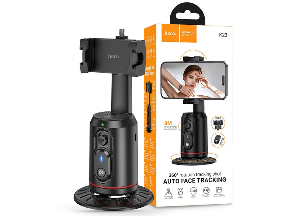HOCO K23 telefontartó állvány 360 fokos automatikus arckövetéssel, 4,5-7" méret- fekete