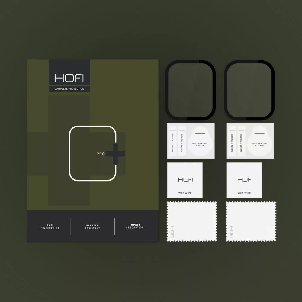 - A mindössze 0,28 mm-es vékony vastagsággal és az Apple Watch 7 / 8 / 9 (45 mm) képernyőjének teljes lefedettségével a Hofi hibrid üveg szinte láthatatlan.