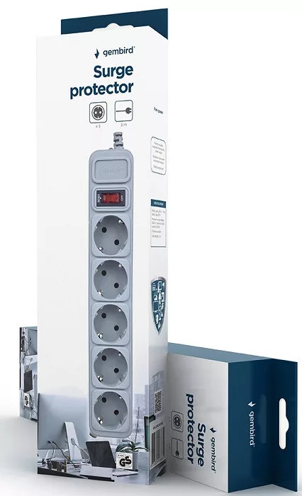 Hálózati elosztó 5-ös (földelt) 3m túlfeszültségvédős Gembird