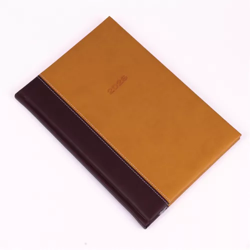 HATÁRIDŐNAPLÓ LINETT B/5, HETI FEHÉR LAPOKKAL BARNA-MUSTÁR REALSYSTEM 2026.