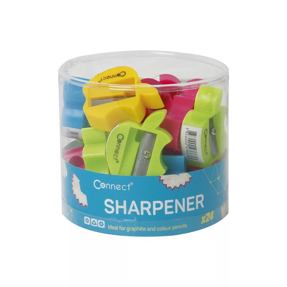 Hegyező 1 lyukú műanyag Connect alma alakú, különféle színek
