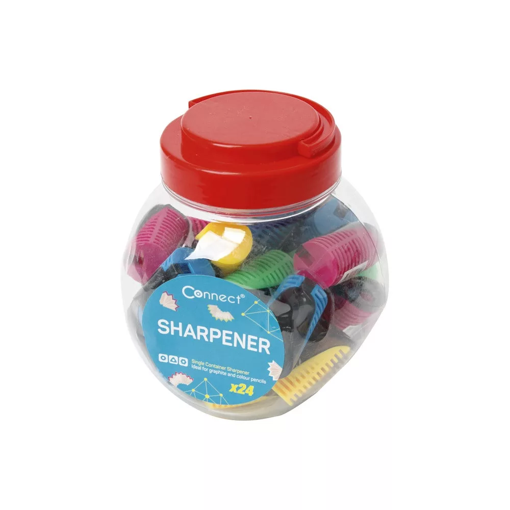Hegyező 1 lyukú műanyag, tartályos Connect különféle színek