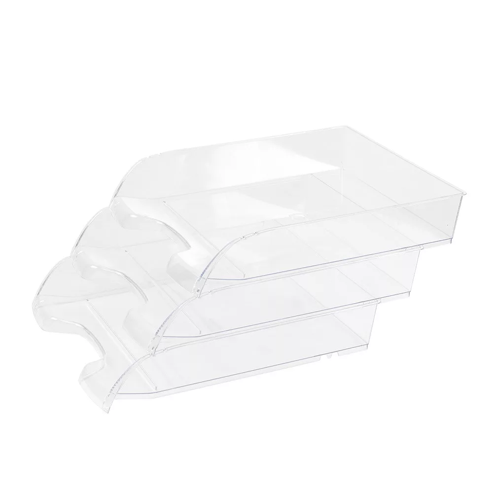 24DB/KARTON. A4+ méretű dokumentumok, papírok tárolására alkalmas egymásra helyezhető kiváló minőségű, extra széles irattálca. A dokumentumok akár lefűzhető tasakban vagy gumis mappában is tárolhatóak a 26,5cm belső szélesség miatt. Anyaga rugalmas műanyag, így nem törik, nem reped. Egymásba csúsztatható, így szállítás közben nem sérül, biztonságosan szállítható. Katalóguskód: 966
