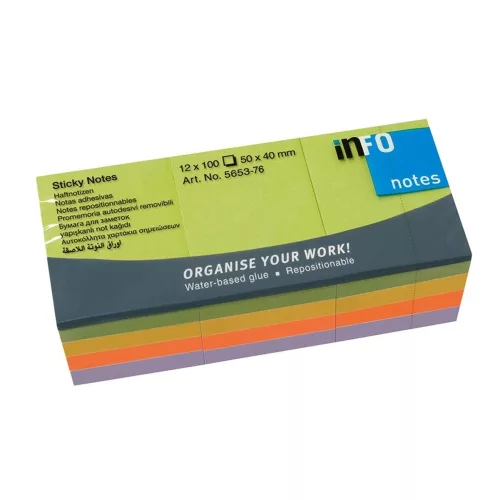 Jegyzettömb öntapadó, 40x50mm, 100lap, 12 tömb/csomag, Info Notes, spring