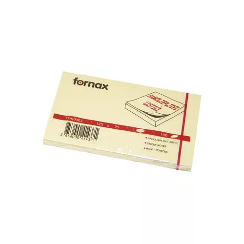 Jegyzettömb öntapadó, 75x125mm, 100lap, Fornax, sárga