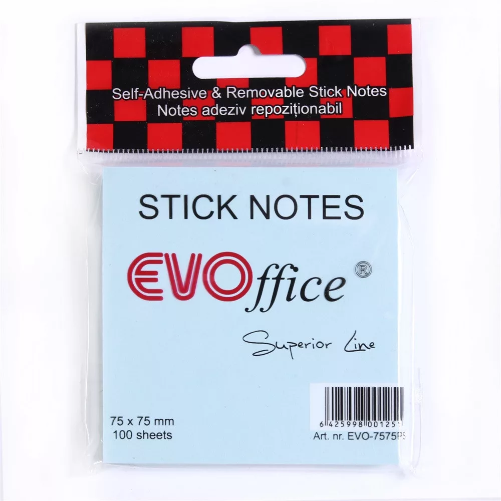 Jegyzettömb öntapadó, 75x75mm, 100lap Evoffice, pastell kék