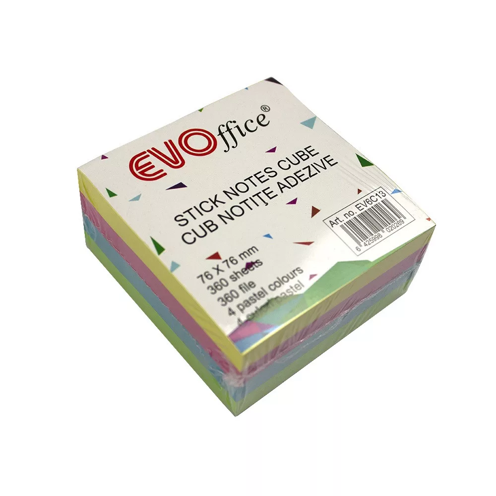 Jegyzettömb öntapadó, 75x75mm, 360lap, EVOffice 4 pasztell szín