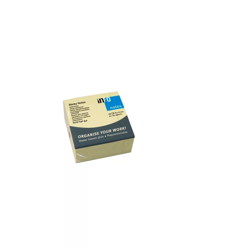 Jegyzettömb öntapadó, 75x75mm, 400lap, Info Notes sárga