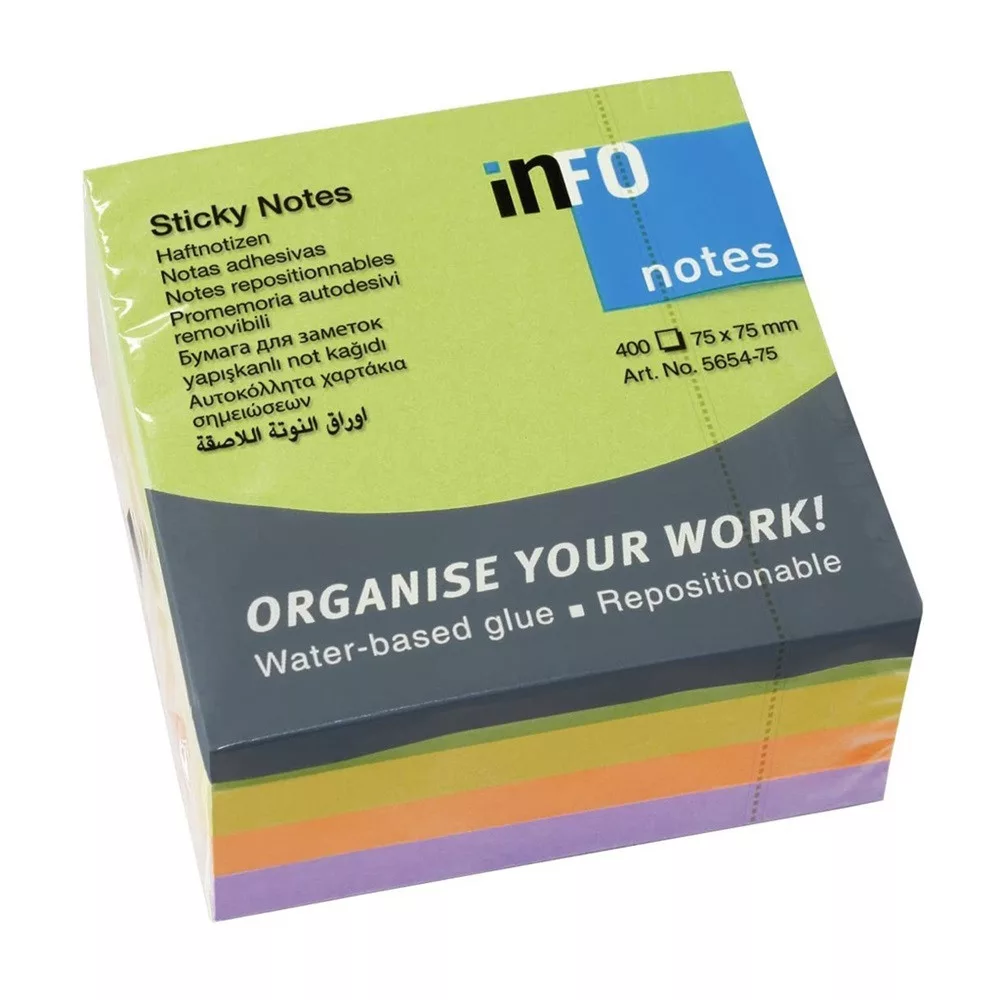 Jegyzettömb öntapadó, 75x75mm, 400lap, Info Notes spring
