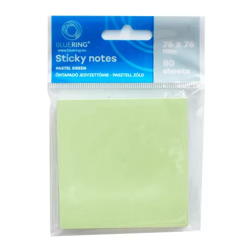 Jegyzettömb öntapadó, 75x75mm, 80lap, Bluering® , pasztellzöld
