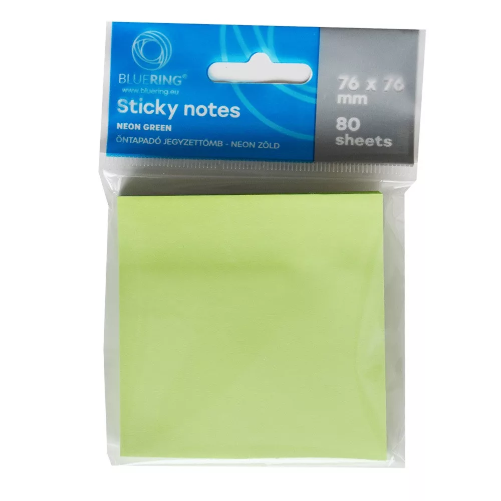 JEGYZETTÖMB ÖNTAPADÓ 80LAP 76X76MM NEON ZÖLD BLUERING 1DB