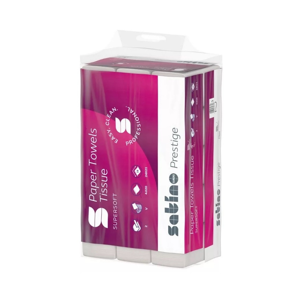 Satino Wepa Prestige V hajtogatott kéztörlő 2 rétegű, fehér, 24x21cm, 4032 lap/zsák