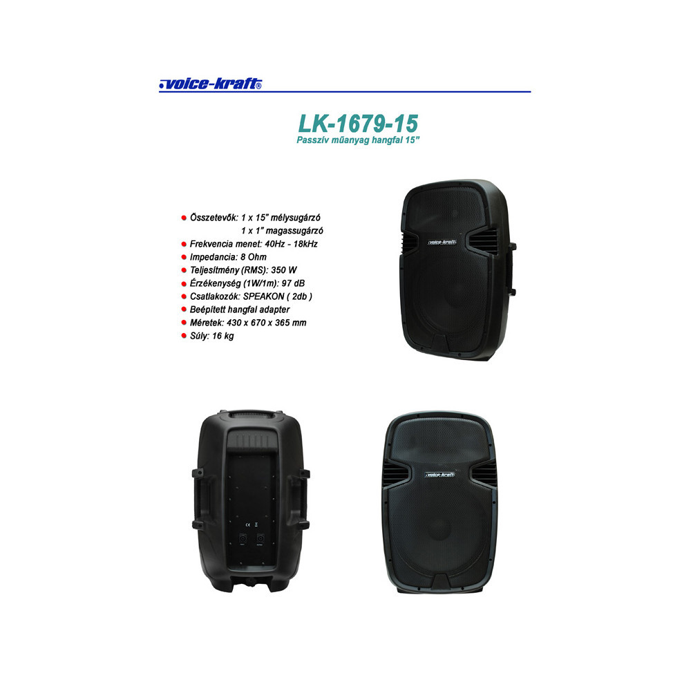 LK-1679-15 Passzív műa. hangfal, 15", 350W/8Ohm