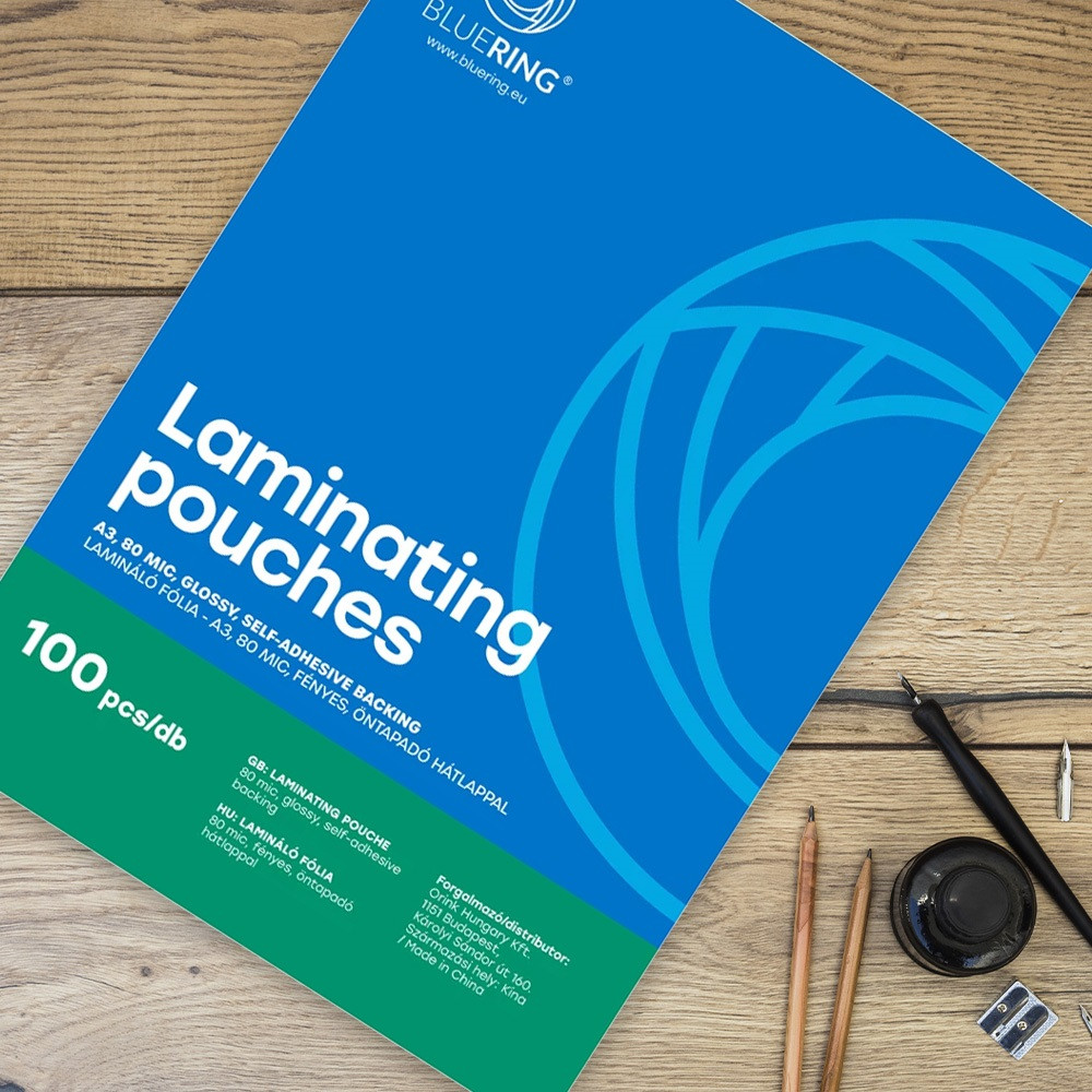 Lamináló fólia A3, 80 micron öntapadó hátlappal 100 db/doboz, Bluering®,