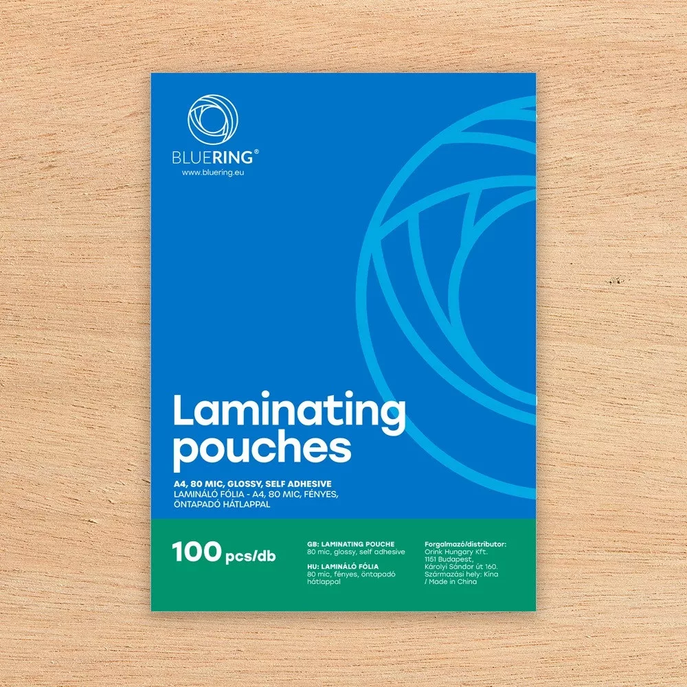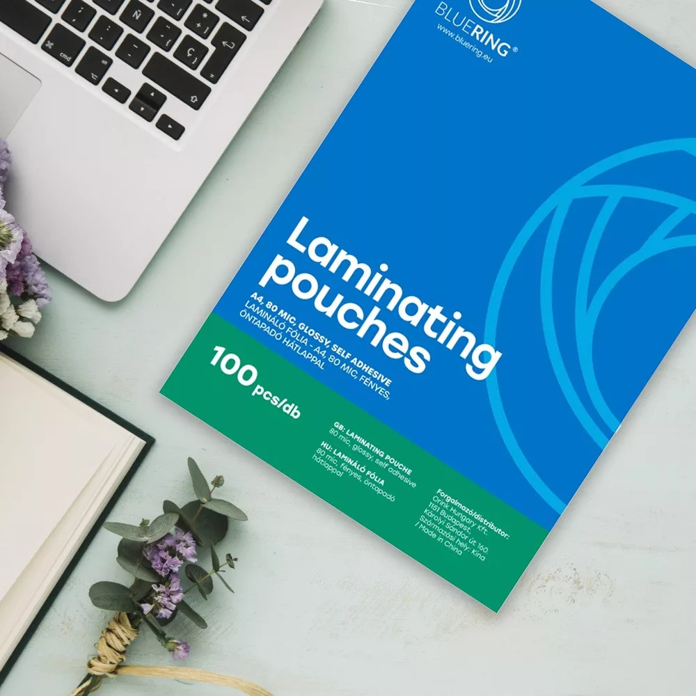 Lamináló fólia A4, 80 micron öntapadó hátlappal 100 db/doboz, Bluering®,