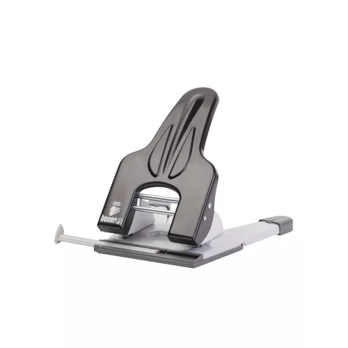 Formatervezett lyukasztógép, szabadsínes műanyag távtartó. Egyszerre lyukasztható lapok száma: max.30 lap. Lyuktávolság: 80 mm. Lyukátmérő: 5,5 mm. Katalóguskód: 13614