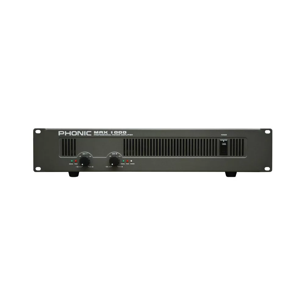 A Phonic Max - szériának köszönhetően mindenki megtalálhatja azt a végfokot, amire rendszeréhez szüksége van. Bemenetek szempontjából egyaránt csatlakoztatható XLR és TRS csatlakozó, míg a kimenő teljesítmény Speakon, vagy hagyományos csavarós hangfalsarun keresztül hasznosítható. Ezen kívül egyes készülékekben található föld kapcsoló, állítható csúcs limiter, mélyvágó szűrő és sztereó / paralell / bridge kapcsoló.Teljesítmény: 200W - 8Ohm