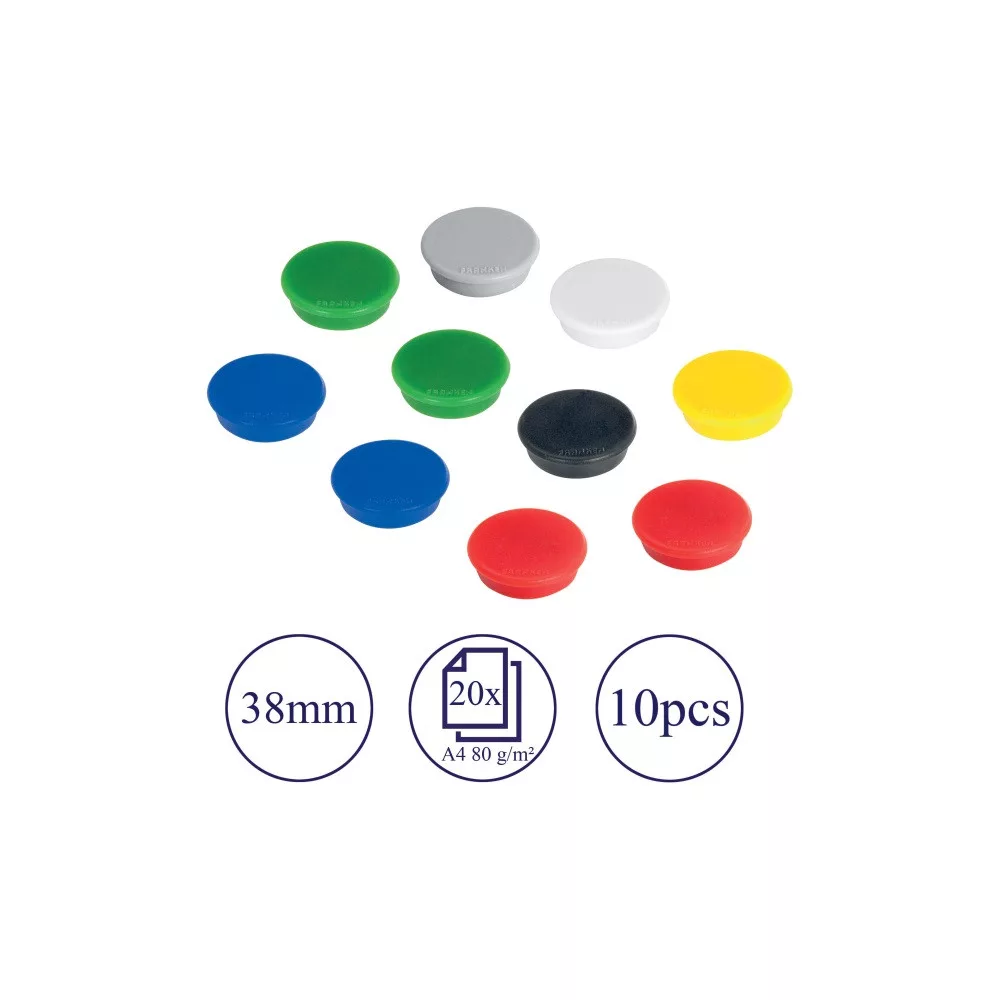 Dokumentumok mágneses felületeken való megjelenítéséhez. Kiváló minőségű mágnesek a lakozott felületnek köszönhetően nem karcolják a mágnesezhető felületeket. Erősség: 800 g. 10 db / csomag