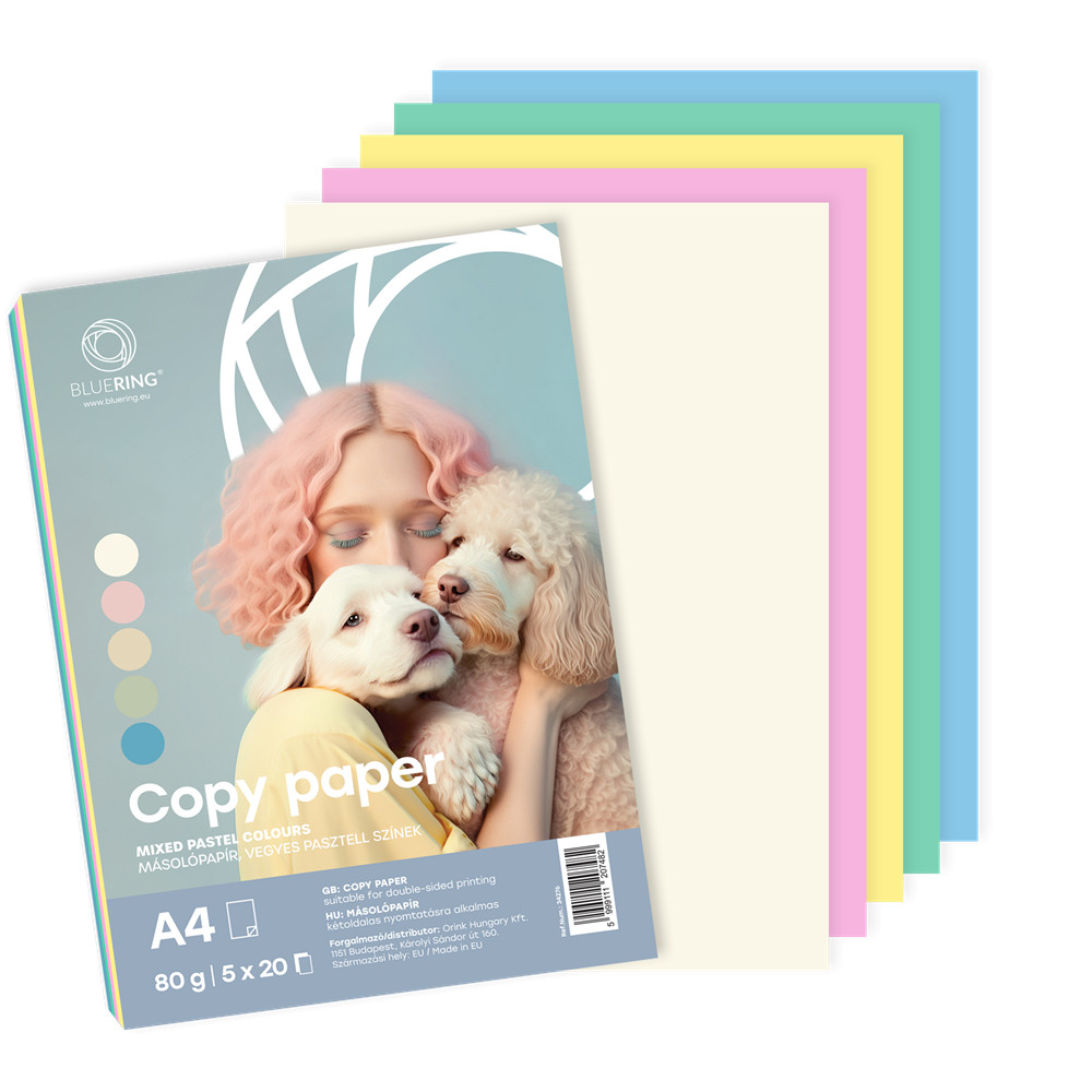 Magas minőségű, kétoldalas másolásra és nyomtatásra is alkalmas másolópapír. Ezekkel a pasztell színekkel semmi sem gátolja kreativitását, használja szakmai célokra, a háztartásban rajzolásra vagy barkácsolási segédanyagként. A színes fénymásolópapír kiválóan alkalmas gyermekek számára kreatív anyagként, fantáziájuk kibontakoztatásához. 5x20 ív/csomag pasztel mix színek: pasztel középkék, pasztel zöld, pink, sárga, vanília