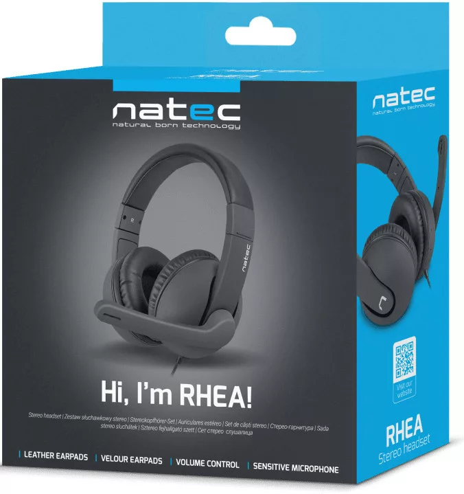 Lebilincselő hangzásA fejhallgató 40 mm-es neodímium hangszórókkal van felszerelve, amelyeket kiváló hangvisszaadás jellemez. Ennek köszönhetően semmi sem zavarhatja meg zenehallgatás vagy hívások közben.Egyszerű kommunikációA Natec Rhea-t kiváló minőségű, érzékeny mikrofonnal is ellátták, amely lehetővé teszi, hogy mások is gond nélkül hallják Önt. Emellett a mikrofon kiszűri a reccsenéseket és a felesleges zajokat.Kényelem a legmagasabb szintenA modern kialakítás puha, ökobőrrel borított fülpárnákkal párosul. Ezek lehetővé teszik a fejhallgató többórás használatát anélkül, hogy elfáradna a füle vagy nyomást érezne rajta. A kábelen található távirányítóval pedig könnyedén szabályozhatja a hangerőt.Tartósság éveken átA fejhallgató kiváló minőségű anyagokból készült, így a Natec Rhea hosszú évekig hű társa lesz. A 2,2 méter hosszú kábelt nylon fonat védi a sérülésektől.