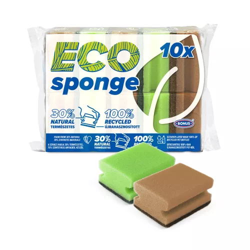 Hatékonyság és gondoskodás, a BONUS ECO formázott mosogatószivacs mindkettőben brillírozik. Karcmentes dörzsi rétegének hála gondoskodó határozottsággal vághatunk bele akár a nagytakarításba is.