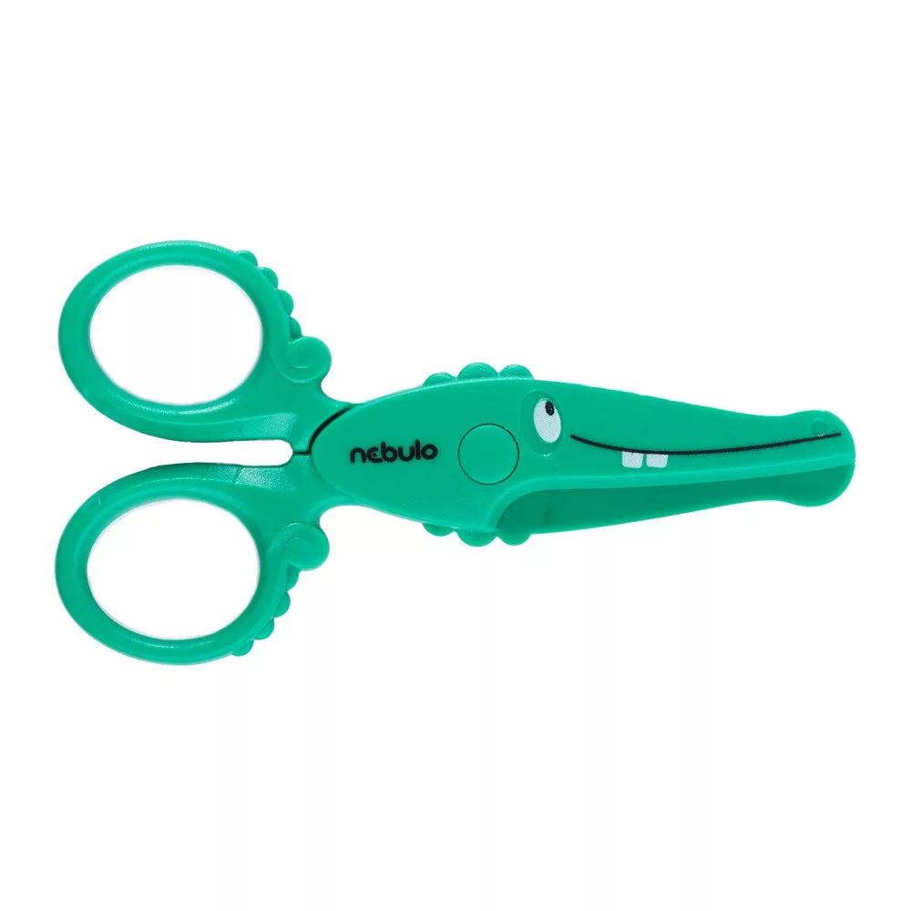 Olló, 12cm, biztonsági, műanyag krokodil forma, Nebulo