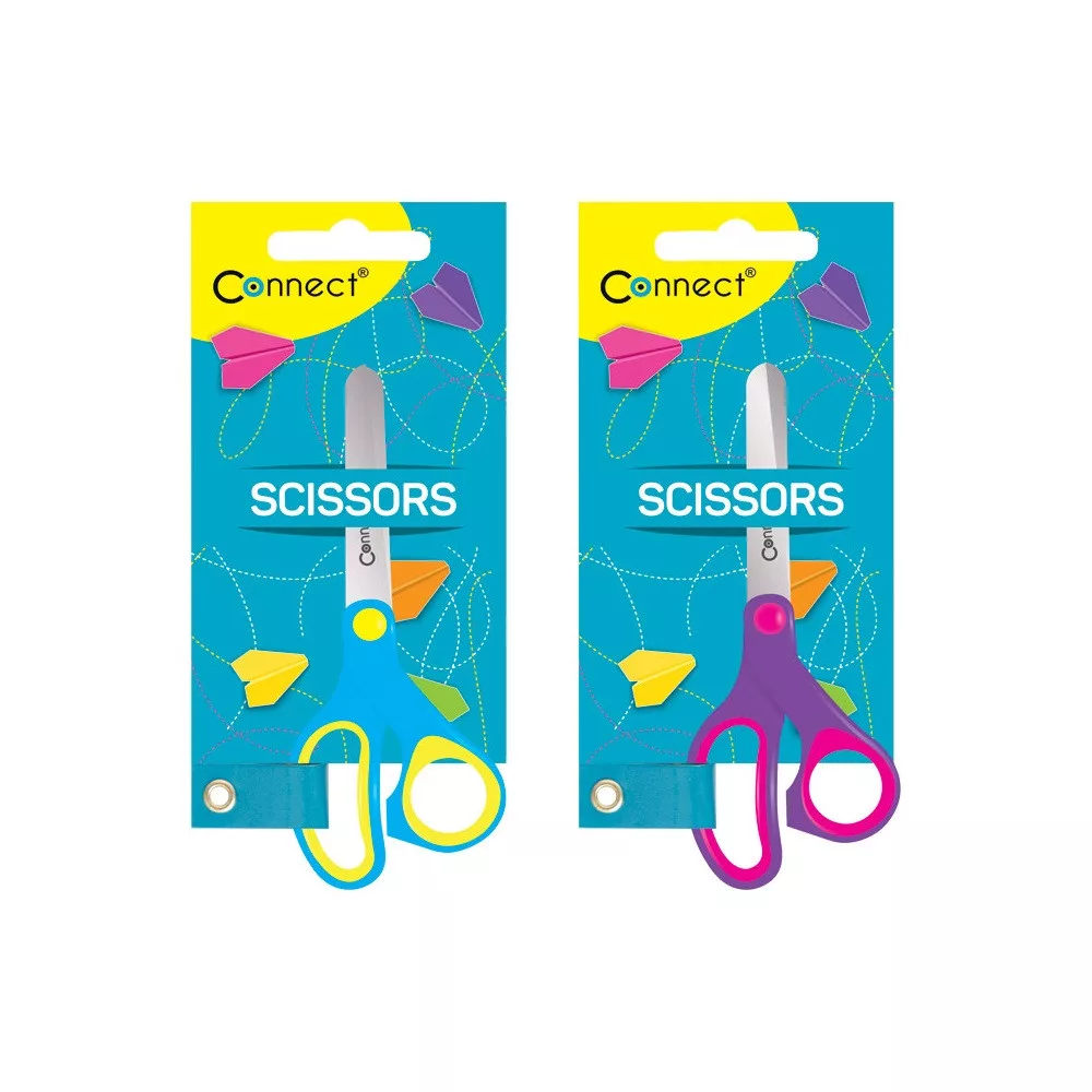 Olló 13cm, iskolai gumírozott fogóval, felakasztható csomagolásban Connect,