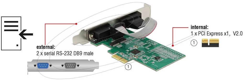 PCIe x1 kártya 2 x Soros RS-232 Delock 89557