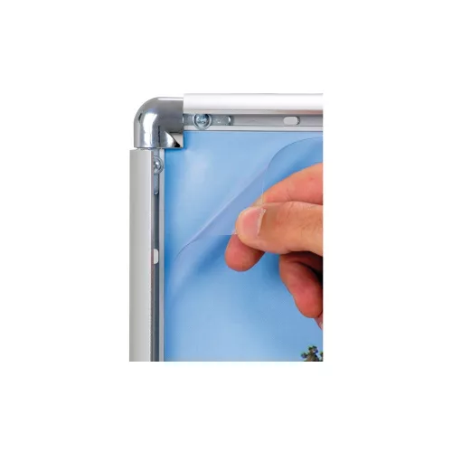 Elegáns eloxált aluminium képkeret a dokumentumok és poszeterek egyszerű és biztonságos cseréjéhez. A keret függőlegesen és vízszintesen is felszerelhető / szereléshez szükéseges tartozékokat tartalmazza /. PVC lap UV-szűrővel védi a dokumentumokat.