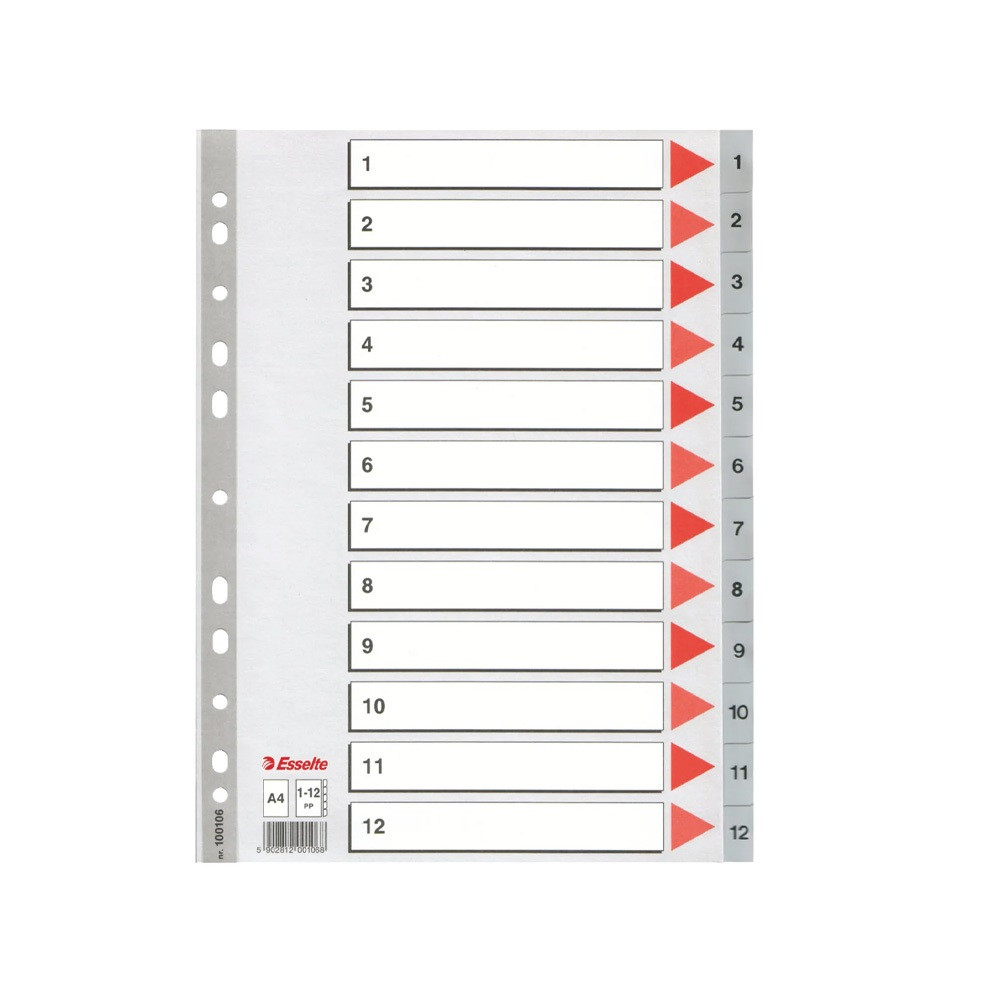 REGISZTER MŰANYAG A4, 1-12 ESSELTE SZÜRKE